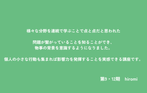 これまでの受講生の声 第11期 本川誠 2025.09.08 2025.10.25 Post Share Hatena Line RSS feedly Pin it note 記事のタイトルとURLをコピーする 「社会課題は根底では全て繋がっている」と同じく「エシカル」も全体を通して体系的に学ばないと見えてこないものがあるんだなとエシカル・コンシェルジュ講座を受けて気付くことができました。 第13期 はっこうちゃん。 前の記事 第2〜13期 堀田三佳 次の記事
